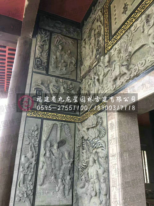 九龍星園林古建最新寺廟外墻青石浮雕安裝實拍圖