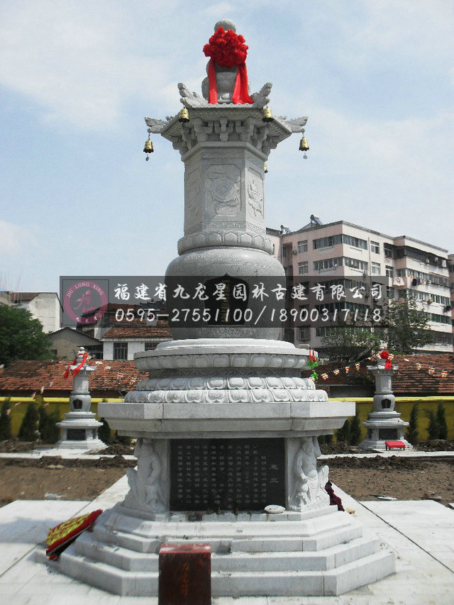 石雕佛塔梵文譯名是窣堵波,簡稱石塔。在漢代時傳入中國與中國本土建筑相結合形成了中國的石塔這種建筑形式。隨著佛教在東方的傳播,窣堵坡與中土的重樓結合后,發展出了石塔這種極具東方特色的傳統建筑形式。