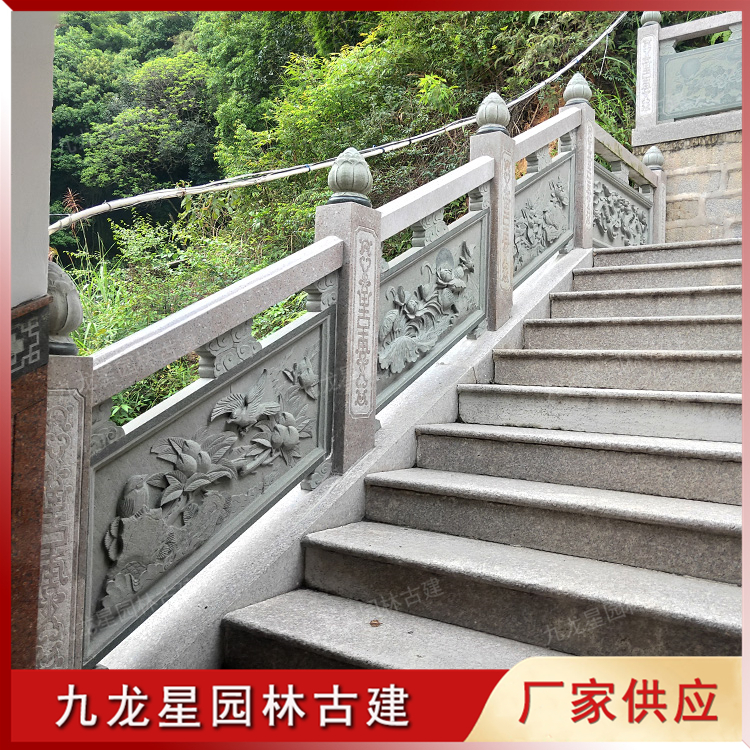 園林古建筑石欄桿具有很好的裝飾作用。石雕欄桿欄板上精美的浮雕圖案讓石欄桿更加的生動(dòng),更有觀賞價(jià)值。這些豐富多樣的石雕欄桿為園林古建筑的裝飾增強(qiáng)了濃厚的文化氣息。