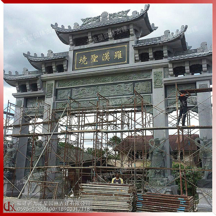 廟宇景區(qū)三門石雕牌坊圖片